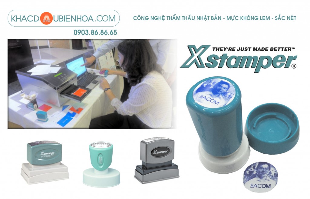 Đến với khacdaubienhoa.com quí khách hàng sẽ được đáp ứng đầy đủ với các công nghệ khắc dấu liền mực bằng Polymer, công nghệ khắc dấu liền mực Laser. Đặc biệt là công nghệ khắc dấu thẩm thấu siêu nét, siêu bền Xstamper Quix của hãng Shachihata Japan. Con dấu thẩm thấu Xstamper Quix có đặc điểm rất đặc biệt mà chưa có sản phẩm nào đạt được đó là mực không lem khi bị thắm nước nên sẽ rất có lợi khi đóng trên những giấy tờ quan trọng và có thời gian lưu trữ lâu.